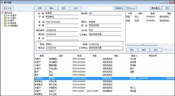 贷款客户来借款,在【借出管理】-【客户登记】里,登记客户的身份证、担保人等信息。
